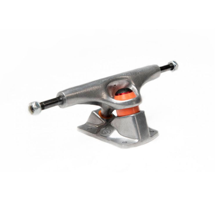 The GrindKing Disruptor leads the way in performance and innovation! This truck will take your grinds to the next level by providing smoother and longer grinds without kingpin hang ups. The curved edge on the baseplate will help keep your board from breaking