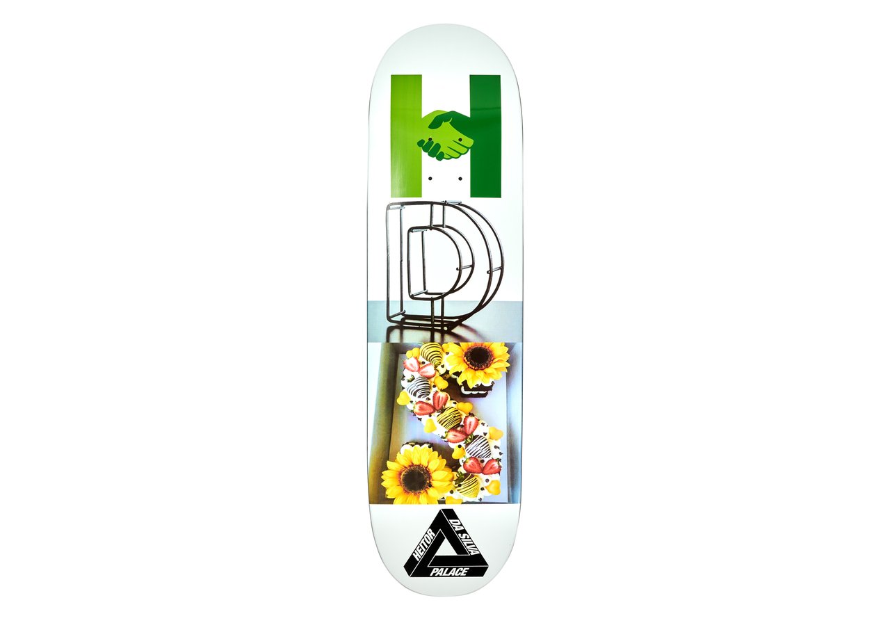 Palace Heitor Da Silva S26 professional skateboard deck. Width: 8.5". Length: 31.95". Wheel Base: 14.5". Nose: 6.75". Tail: 6.5". 7 ply Canadian maple