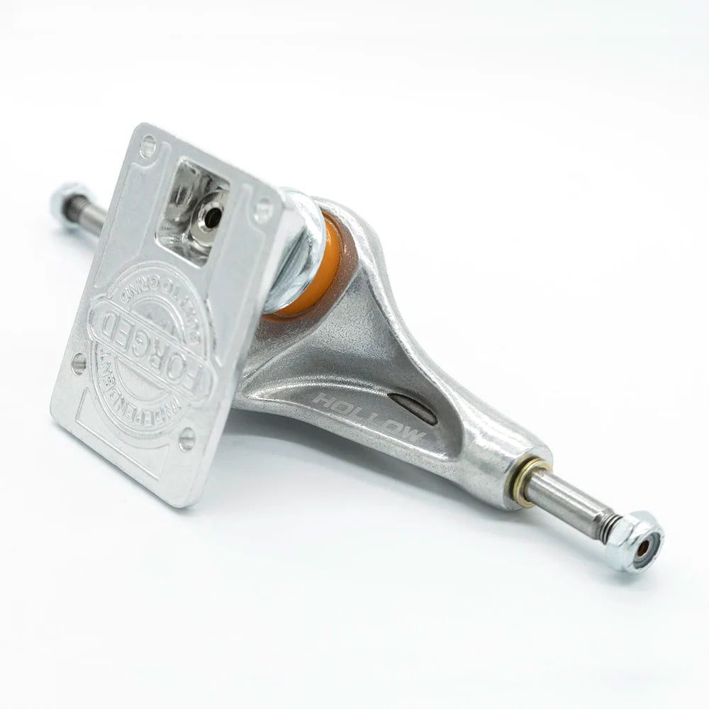 Super lightweight truck with forged baseplate and hollow axle & kingpin.