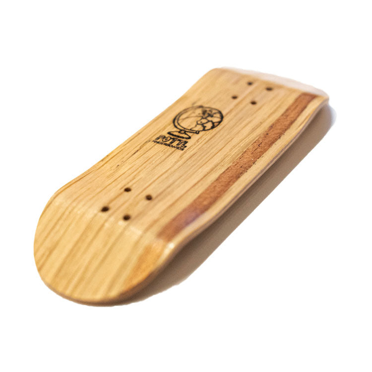 Pottl fingerboards are the result of a fingerboard enthusiast wanting to make a fingerboard deck which was completely adapted to his own wishes. The specifications on the boards are taken from the board maker's own favorite brands and combined into one board. The result is a high-quality fingerboard deck with a lot of "pop" and excellent functionality. The boards are made out of 5 layers of wood veneer.