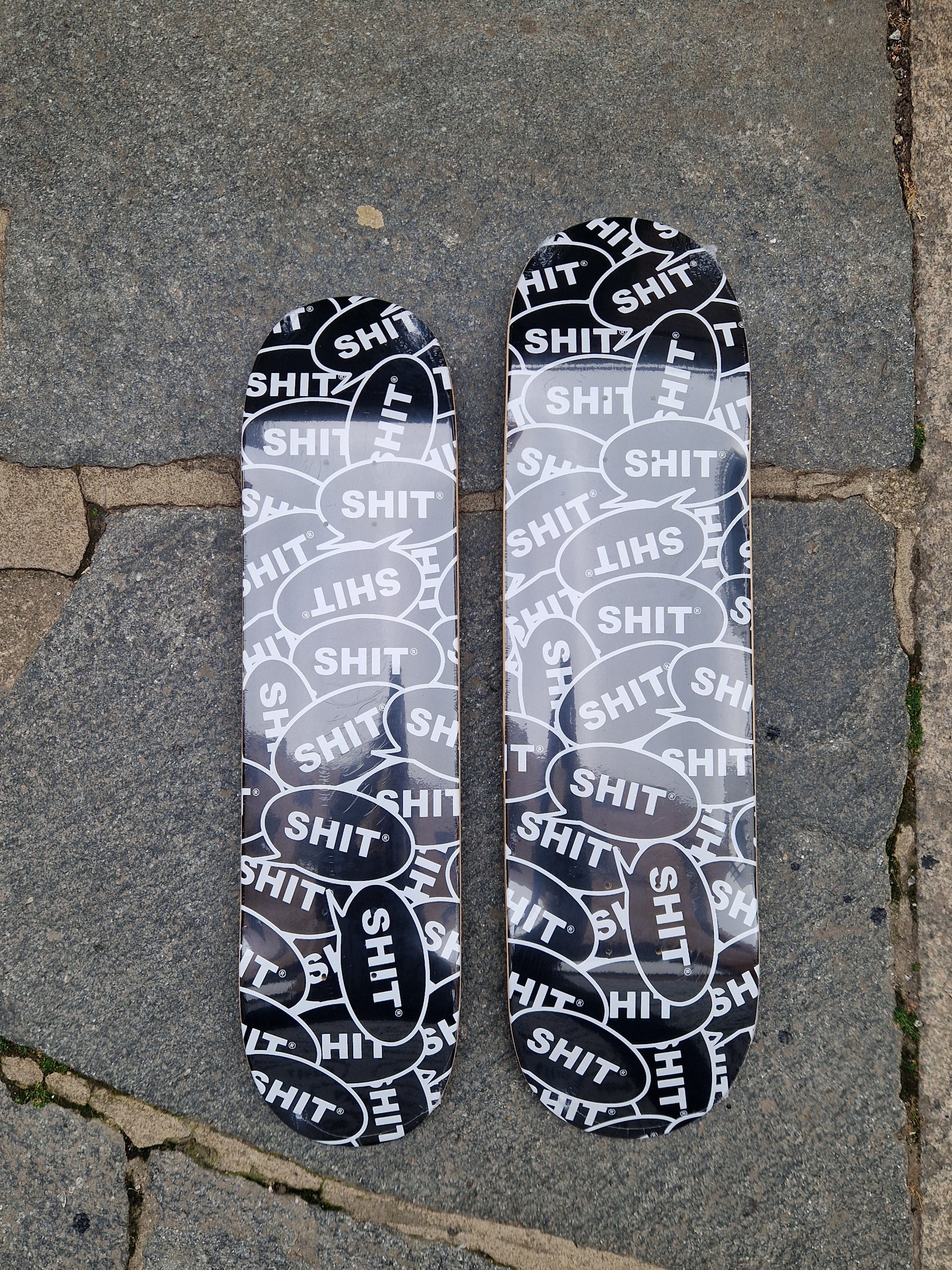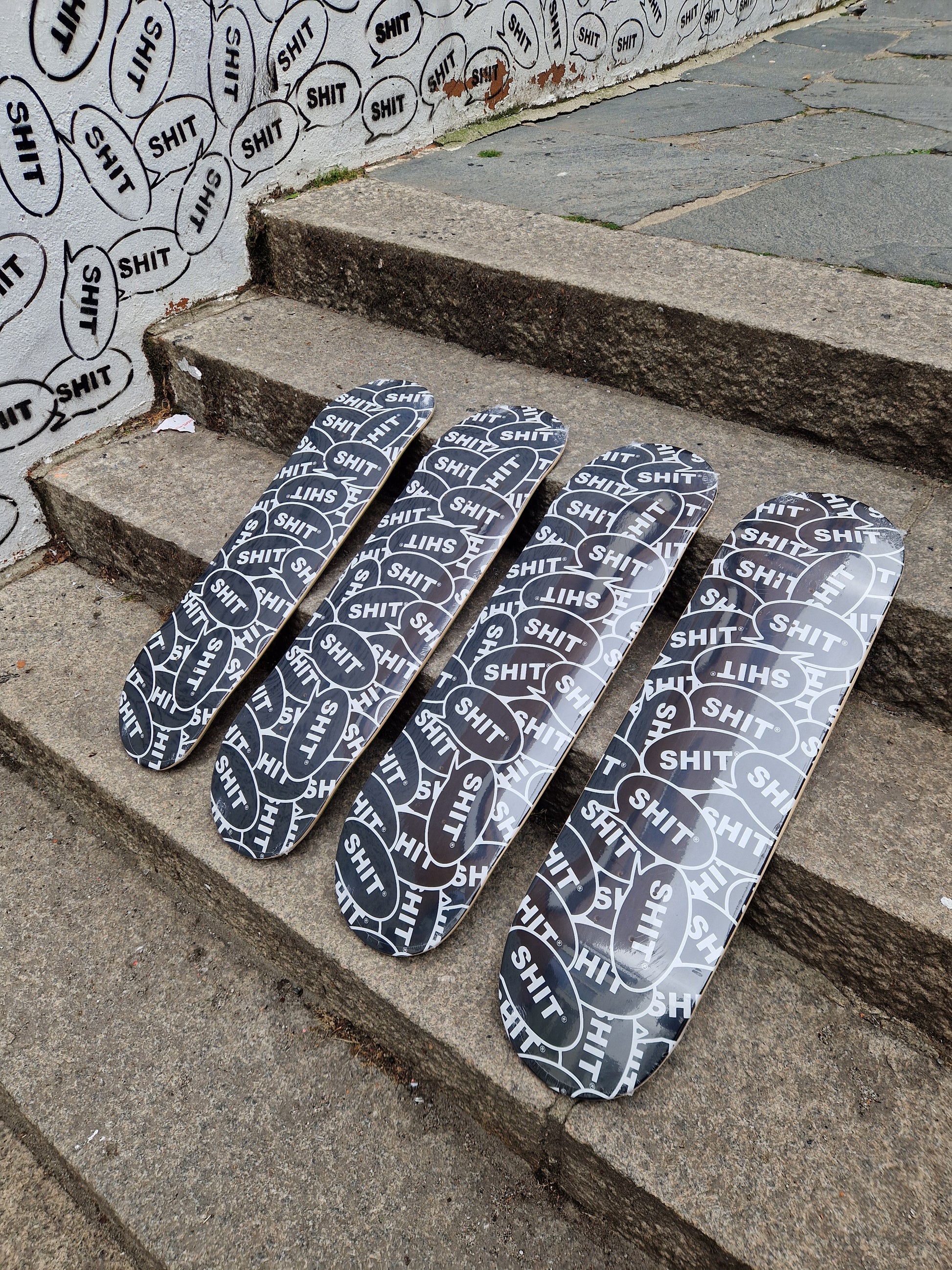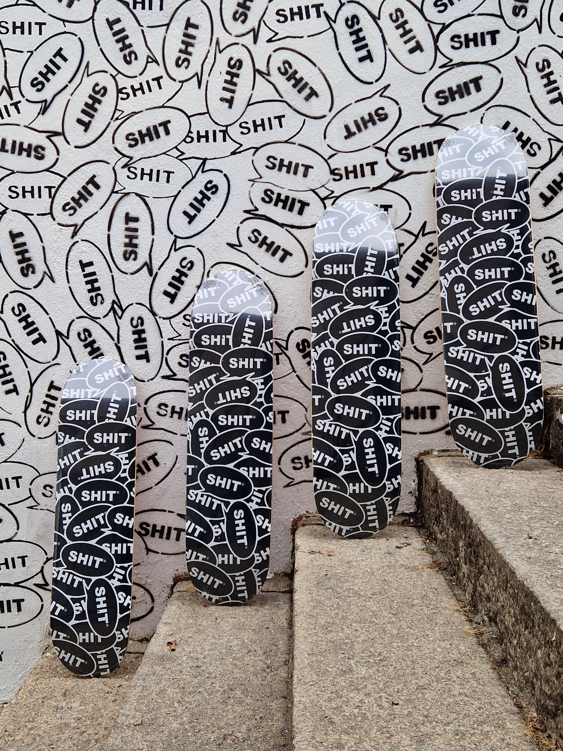 This "SHIT® sticker bombed" graphic is the mostly sold and most popular SHIT® deck graphic. Loved by skaters globally.
