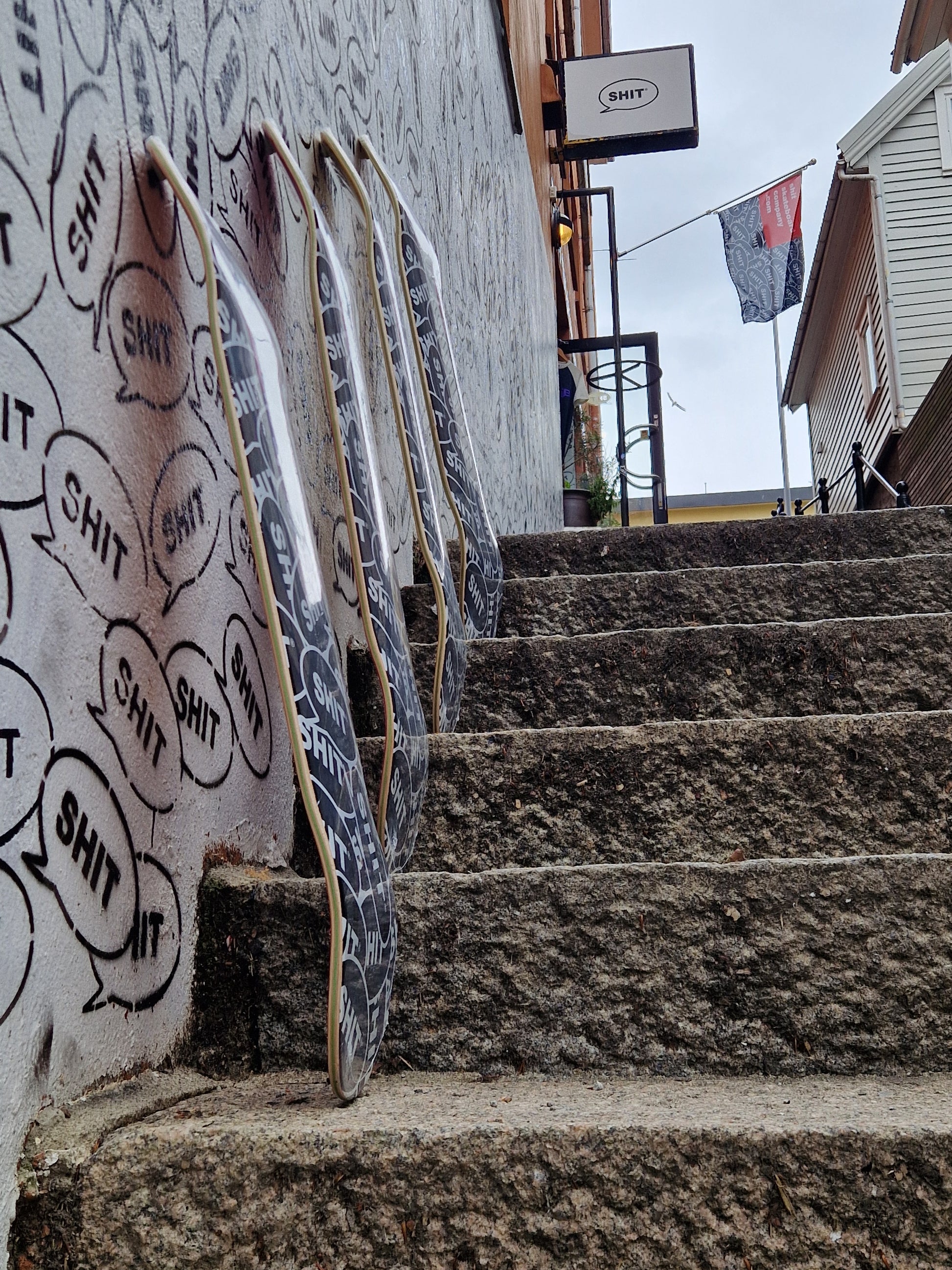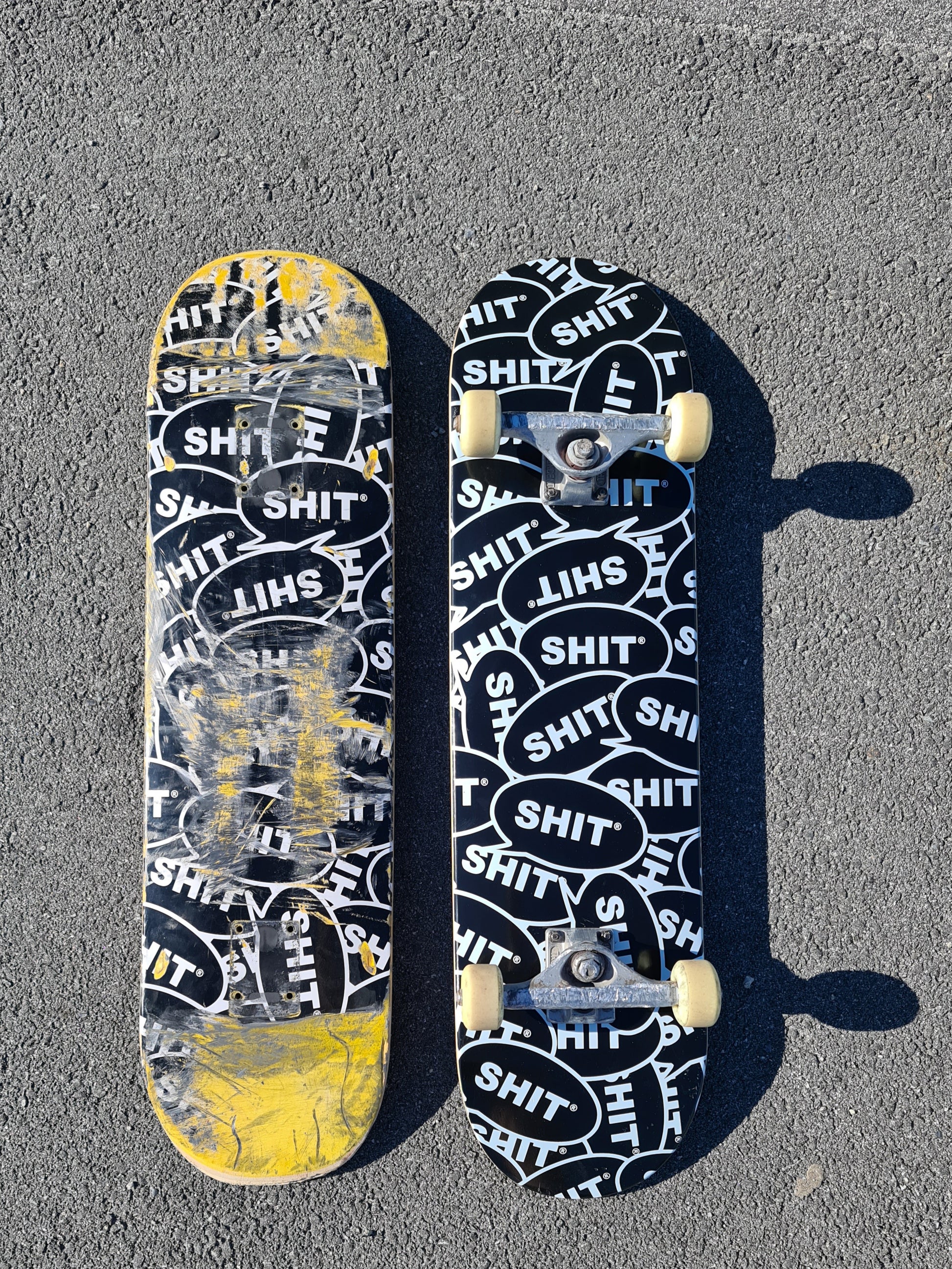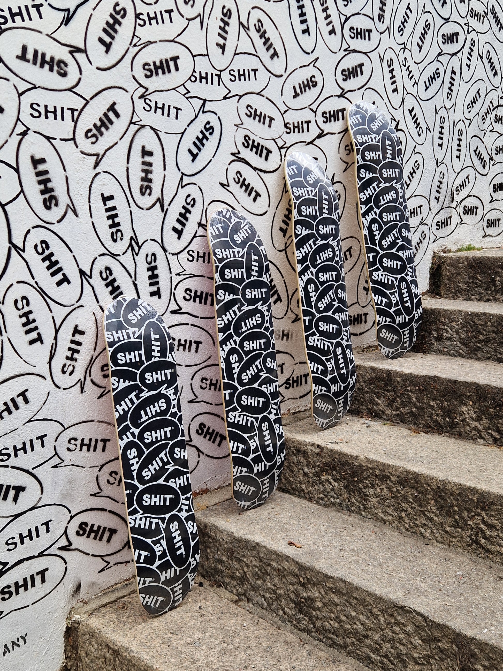 This "SHIT® sticker bombed" graphic is the mostly sold and most popular SHIT® deck graphic. Loved by skaters globally.