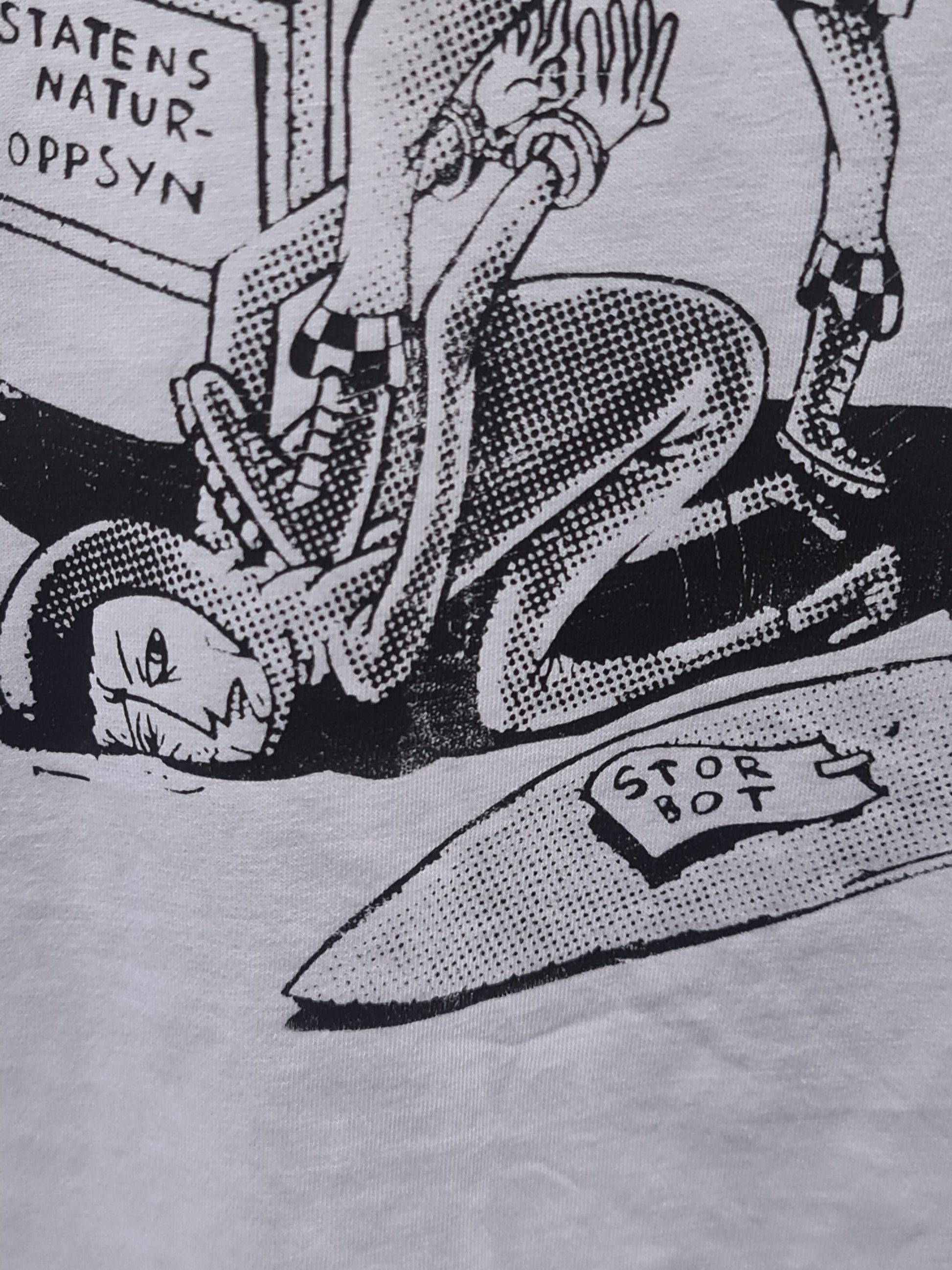 An OG surfer and friend with great drawing skills collaborate with our own screen printing CEO and make this unique shirt to show the ban from a true Norwegian surfers point of view.
